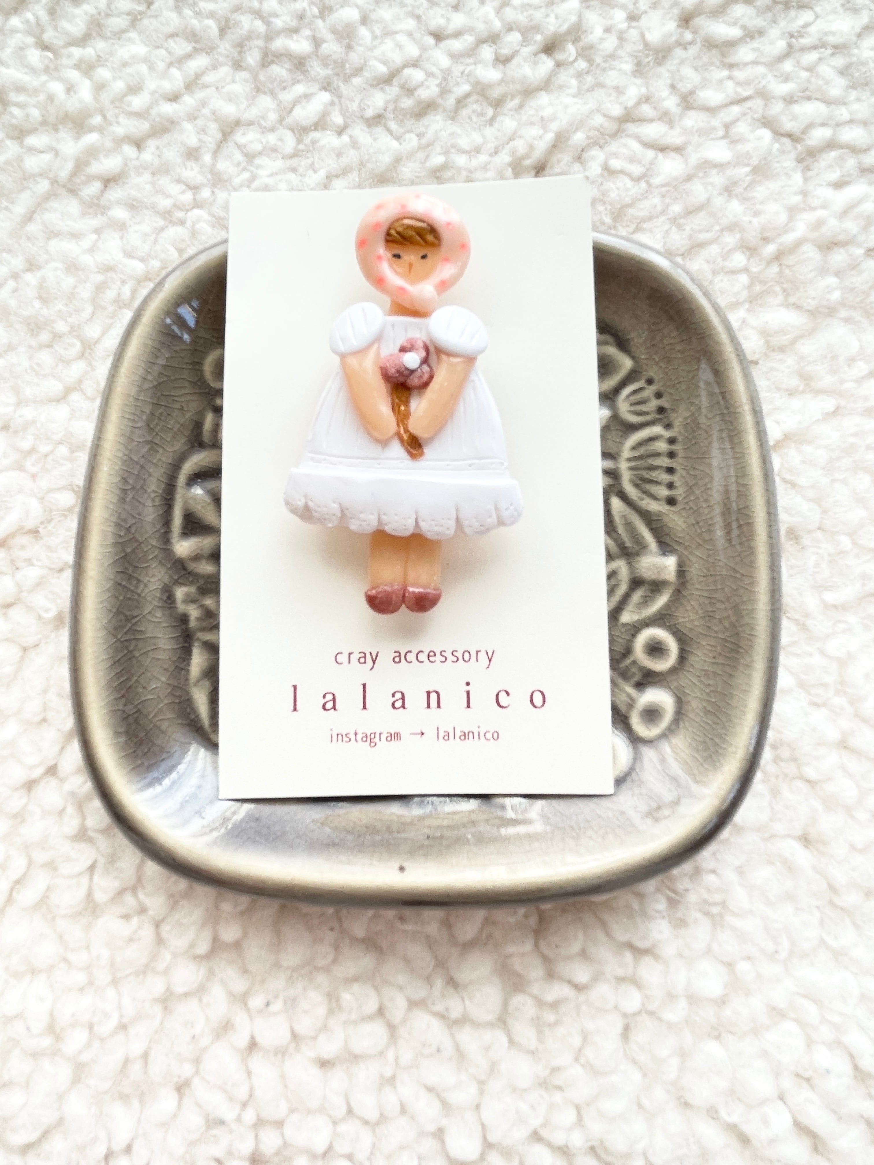 ほっかむりおじょうさんブローチ