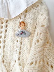 ネコが胸元にいる服を着たおじょうさんブローチ。なんとも言えない可愛さです!