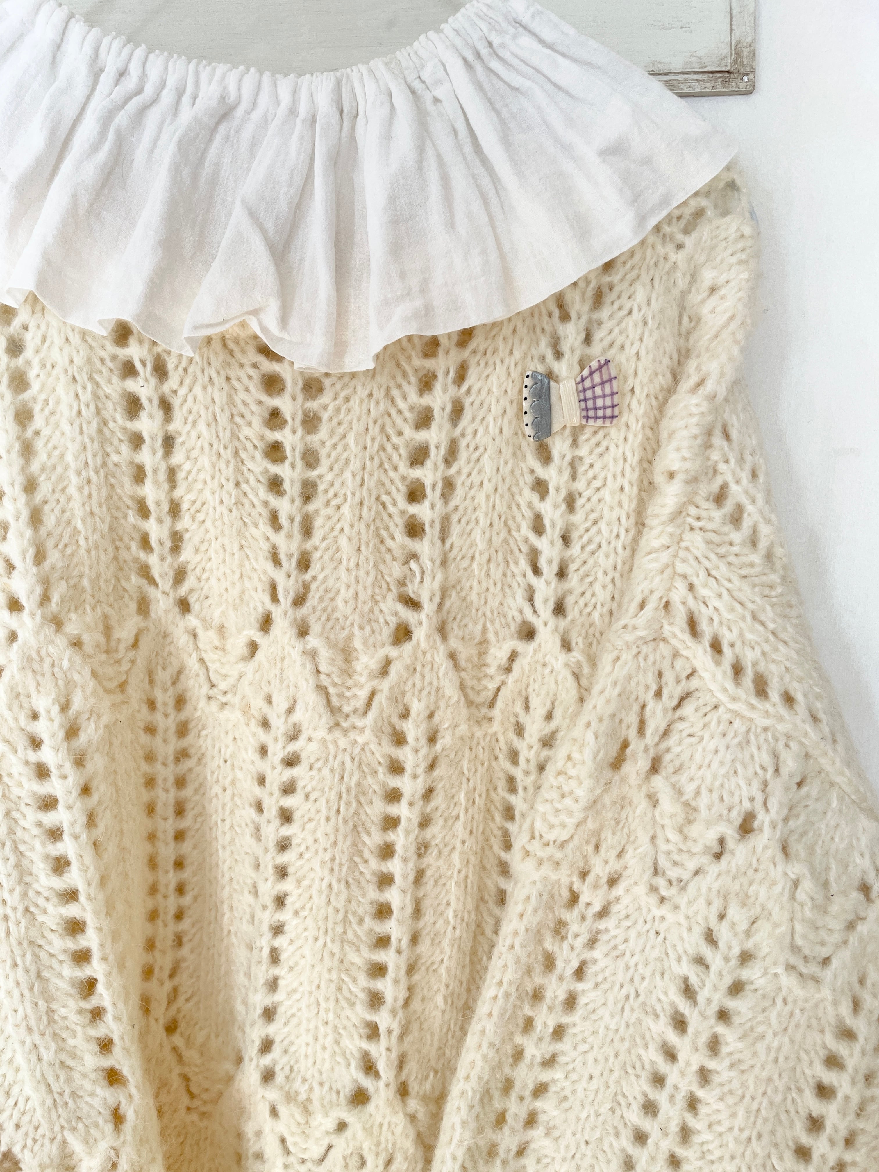 シルバーとむらさき色の組み合わせがオシャレなありそうでない可愛いブローチです。